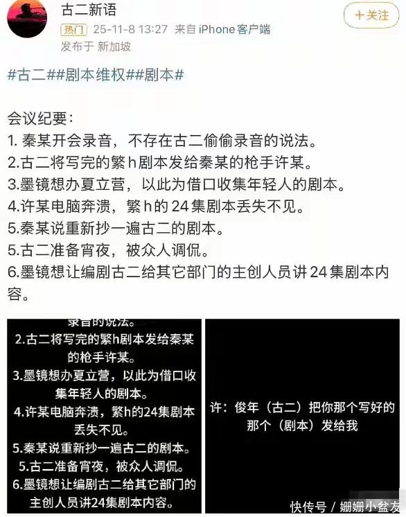 这一切的源头,是一位笔名为"古二"的剧组前编剧。